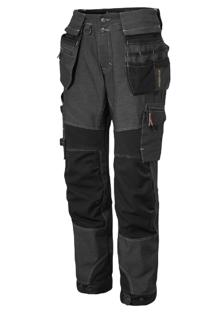 Lisaks kahele küljetaskule on pükstel palju funktsionaalseid taskuid. Vasakpoolsel reiel lukuga tasku, mobiiltelefonitasku ja väline ID-kaardi tasku. Parempoolsel reiel tasku noahoidjaga ja pliiatsitasku. Lisaks on pükstel kaks haamriaasa ja takjakinnitus metallist haamrihoidjale. D-rõngad ja võtmehoidja.