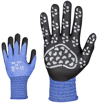 Nahasõbralikud ja elastsed montaaži/ peenmehaanikatööde kootud nailon/Spandex töökindad, vahtnitriilkummiga kaetud peopesa ja sõrmeotsad + vahtnitriilmuster, mis tagavad väga hea haarde nii kuiva kui ka niisketes tingimustes.
