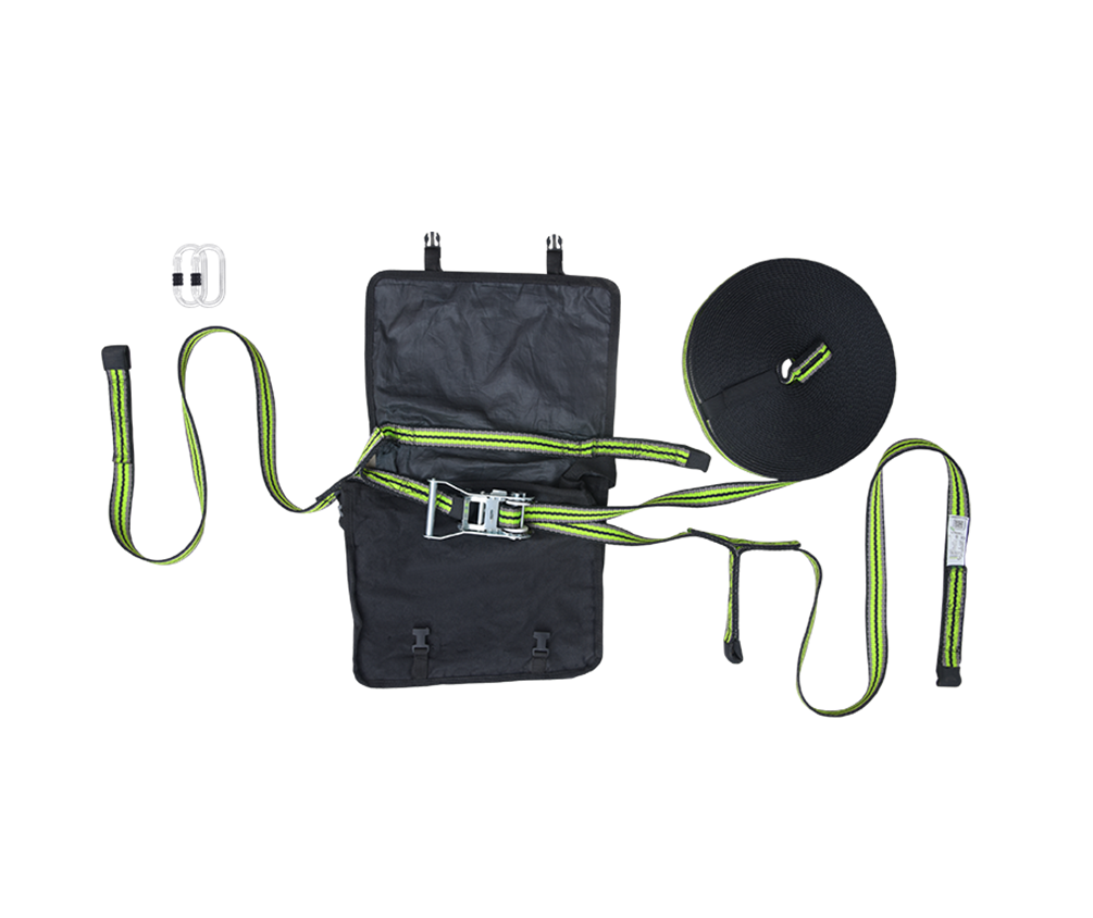 Integreeritud säilituskott, mis hoiab ülearust rihma kasutamise ajal ja võimaldab kogu süsteemi ladustamist samas kotis pärast töö lõpetamist