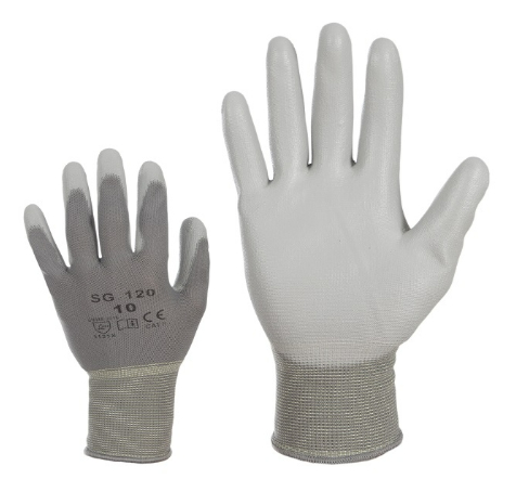 120 – elastsed polüestrist töökindad, peopesa kaetud polüuretaaniga (hall)