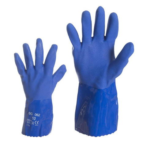 Elastsed ja vastupidavad PVC töökindad pakuvad usaldusväärset kaitset kemikaalide ja niiskuse eest. Kareda libisemisvastase pinnaga peopesa tagab kindla haarde nii kuivades kui ka märgades tingimustes.