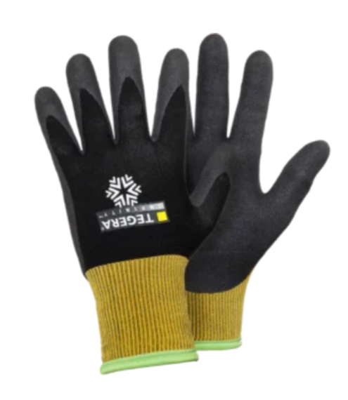 TEGERA 8810 INFINITY talvekindad nitriil/ PU-vahust kattega on kõrge kaitsetasemega ja vastupidavad. Nailonist töökinnaste peopesa on kaetud nitriilvahust polüuretaaniga (PU). Karestatud muster peopesal annab suurepärase haarduvuse. Kindad taluvad kuni 100°C kontaktkuumust. Kinnaste sõrmeotsad on suurepärase tundlikkusega, elastsed ja mugavad. Kinnastel on soe ja pehme fliisvooder. Kindad kaitsevad pindmiste vigastuste, villide, kriimustuste, marrastuste ja rebendite eest. Lisaks kaitseb mustuse, niiskuse ja külma eest. Töökindad on heaks kiidetud toiduainete käitlemiseks.